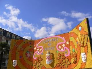 到 了 Menton ( 一 個 在 Monoco 旁 的 一 個 小 鎮 ) 看 所 謂 一 年 一 度 的 檸 檬 節 , 又 是 有 花 車 巡 遊